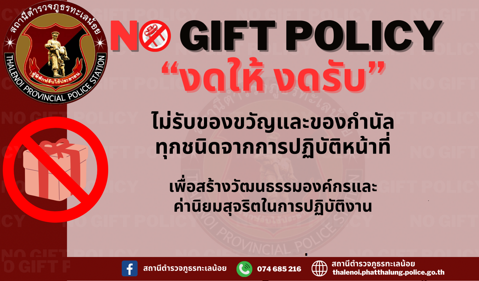 ข้าราชการตำรวจ สภ.ทะเลน้อย ต่อต้านการรับสินบน ไม่รับของขวัญและของกำนัลทุกชนิด Anti Bribery & No Gift Policy