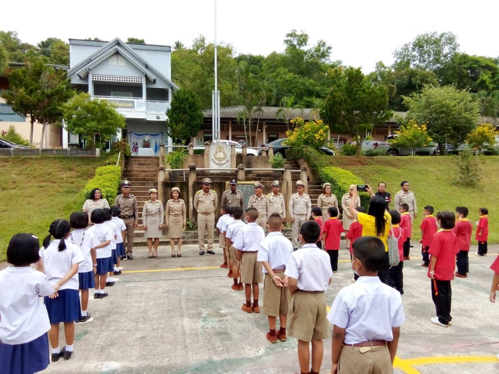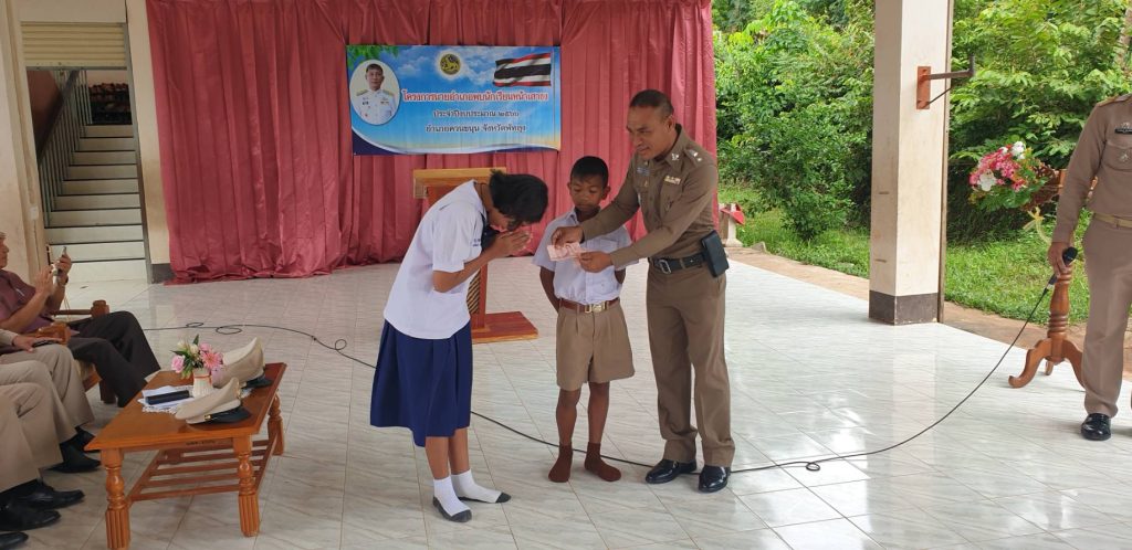 วันที่ 5 ก.ย. 2566 เวลา 07.30 น. พ.ต.อ.วิจิตร ยกทรัพย์ ผกก.สภ.ทะเลน้อย, พ.ต.ท.กฤติเดช นิ่มดวง สวป.สภ.ทะเลน้อย ร่วมกิจกรรมโครงการนายอำเภอพบนักเรียนหน้าเสาธง ประจำปีงบประมาณ 2566 ณ โรงเรียนบ้านควนพนางตุง (สินประชา) ม.3 ต.พนางตุง อ.ควนขนุน จ.พัทลุง