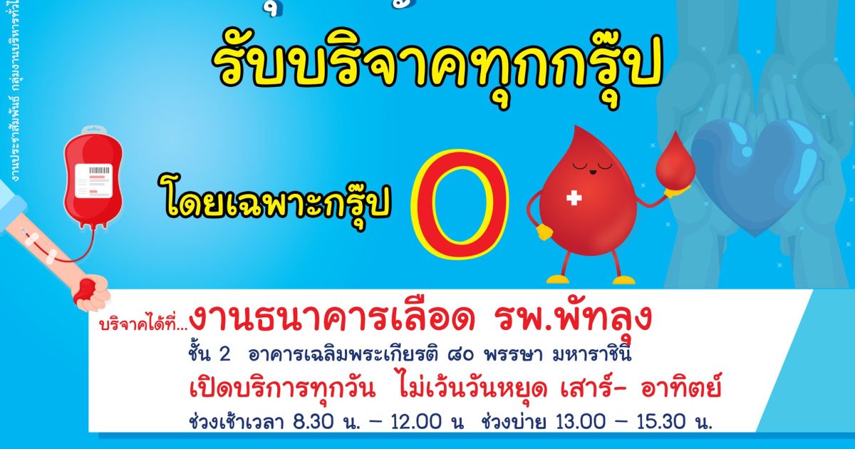 สภ.ทะเลน้อย เชิญชวนร่วมบริจาคโลหิต ณ ศูนย์บริจาคโลหิต รพ.พัทลุง วันที่ 13 ก.ค. 2566 เวลา 08.00 น.