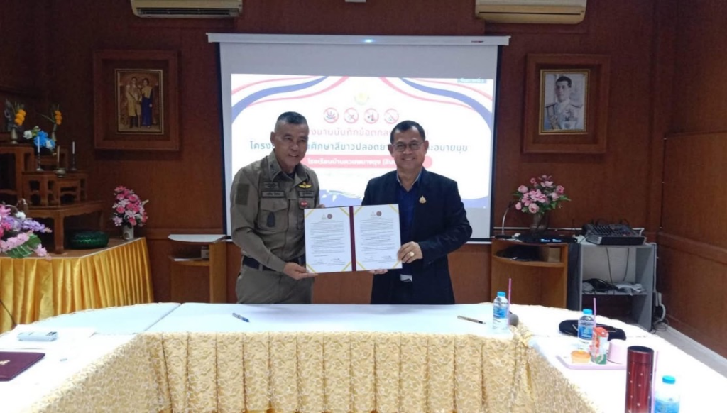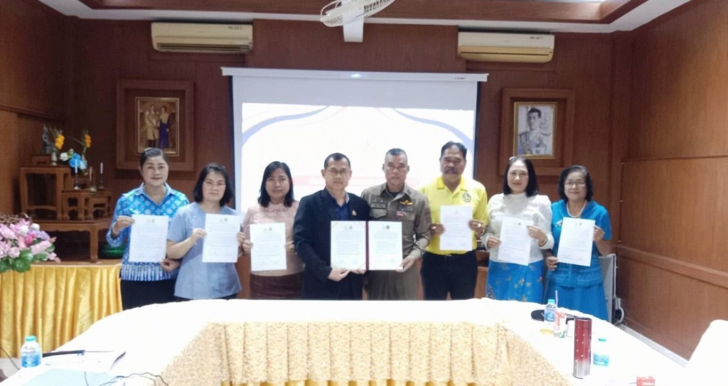วันที่ 20 ธันวาคม 2567 เวลา 09.30 น. พ.ต.อ.เฉลิม ยิ่งคง ผกก.(กลุ่มงานสอบสวน) ภ.จว.พัทลุง รรท.ผกก.สภ.ทะเลน้อย/กรรมการ กต.ตร. สภ.ทะเลน้อย, พ.ต.ท.กฤติเดช นิ่มดวง สวป.สภ.ทะเลน้อย กต.ตร. สภ.ทะเลน้อย, นายสันติ แสงทอง ประธาน กต.ตร. สภ.ทะเลน้อย, นายระพิน ชูทอง ผู้อำนวยการโรงเรียนบ้านควนพนางตุง/กรรมการ กต.ตร., ร.ต.อ.อำนาจ คงนวล รอง.สวป.สภ.ทะเลน้อย ร่วมลงนามโครงการสถานศึกษาปลอดยาเสพติดและอบายมุข ปีการศึกษา 2567 (MOU) ณ โรงเรียนบ้านควนพนางตุง ต.พนางตุง อ.ควนขนุน จ.พัทลุง
