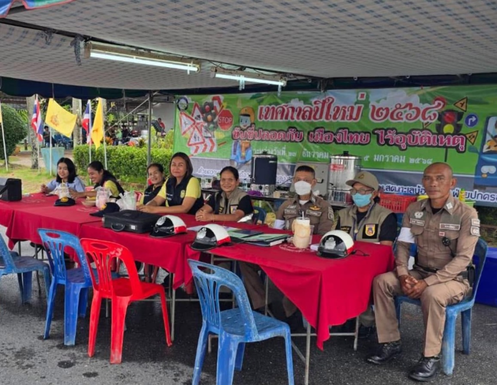 วันที่ 29 ธ.ค.67 เวลา 10.45 น – 11.30 น. ภายใต้การอำนวยการของ พ.ต.อ.เฉลิม ยิ่งคง ผกก.(สอบสวน) ภ.จว.พัทลุง รรท.ผกก.สภ.ทะเลน้อย/กรรมการ กต.ตร.สภ.ทะเลน้อย, พ.ต.ท.ทวีศักดิ์ ขุนเพชร รอง ผกก.ป.สภ.ทะเลน้อย/กรรมการ กต.ตร.สภ.ทะเลน้อย, พ.ต.ท.กฤติเดช นิ่มดวง สวป.สภ.ทะเลน้อย, นางปัทมพร ทองเกลี้ยง กรรมการ กต.ตร.สภ.ทะเลน้อย, นางบุญยรัตน์ แจ้งชูศักดิ์ กรรมการ กต.ตร./ผู้ทรงคุณวุฒิด้านการมีส่วนร่วมของประชาชนและชุมชน สภ.ทะเลน้อยตรวจเยี่ยมจุดตรวจ จุดบริการประชาชน รณรงค์ประชาสัมพันธ์แจกแผ่นพับประชาสัมพันธ์การใช้รถใช้ถนนขับขี่ปลอดภัย ช่วงเทศกาลปีใหม่ 2568 และแจกหมวกนิรภัยให้ประชาชน ตามนโยบายผู้บังคับตำรวจภูธรจังหวัดพัทลุง “ขับขี่ปลอดภัย เมืองไทย ไร้อุบัติเหตุ” หน้าสำนักงานเทศบาลตำบลพนางตุง