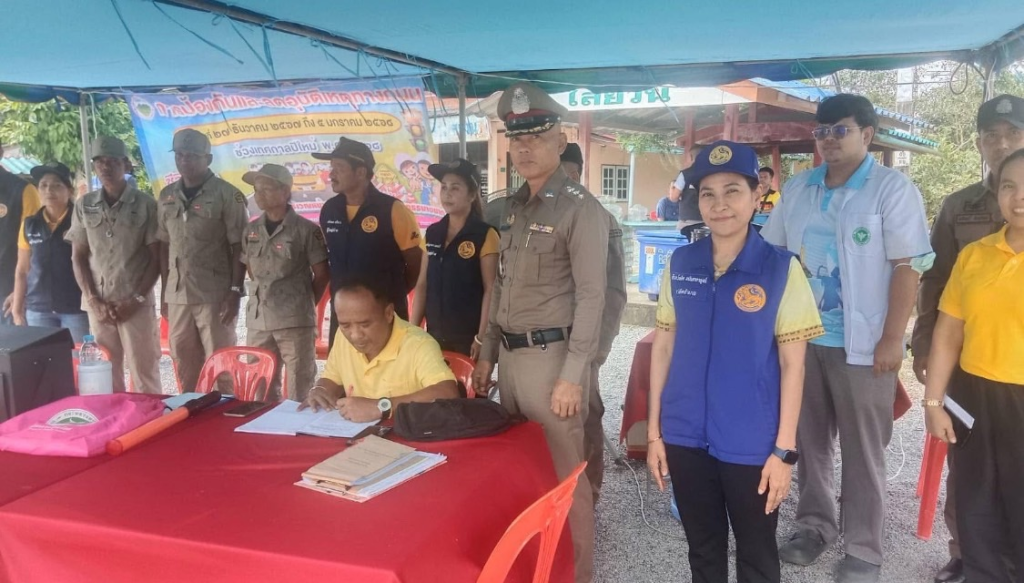 28 ธ.ค.67 เวลา 10.30 – 12.30 น. พ.ต.อ.เฉลิม ยิ่งคง ผกก.(สอบสวน) รรท.ฯ ผกก.ทะเลน้อย นายศรัญยู แดงนวล ปลัดอำเภอควนขนุน/กรรมการ กต.ตร., ด.ต.หญิงจิรภา ชาตรี ผบ.หมู่ (ป).สภ.ทะเลน้อย/กรรมการ, กต.ตร.สภ.ทะเลน้อย ข้าราชการตำรวจ ฝ่ายปกครองพร้อมด้วยข้าราชการตำรวจจิตอาสา สภ.ทะเลน้อย เยี่ยมเยียนจุดบริการประชาชนบ้านใสยวน, หน่วยบริการหน้าตู้ยามชะมวงและ หน้าเทศบาลพนางตุง พบเจ้าหน้าที่ฝ่ายปกครอง สาธารณสุข และอปพร.ร่วมกิจกรรมจิตอาสา มอบสิ่งของน้ำดื่ม,กาแฟให้หน่วยบริการพร้อมให้คำแนะนำในการปฏิบัติงานด้านการจราจร เพื่อสร้างขวัญกำลังใจ และมอบนโยบายการปฏิบัติงานแก่เจ้าหน้าที่ผู้ปฏิบัติงานประจำจุดภายใต้การรณรงค์ “ขับขี่อย่างปลอดภัย เมืองไทย ไร้อุบัติเหตุ” ในช่วงเทศกาลปีใหม่ ทำความสะอาดบริเวณจุดบริการประชาชน และรณรงค์ประชาสัมพันธ์แจกแผ่นพับประชาสัมพันธ์การใช้รถใช้ถนนขับขี่ปลอดภัยช่วงเทศกาลปีใหม่ 2568