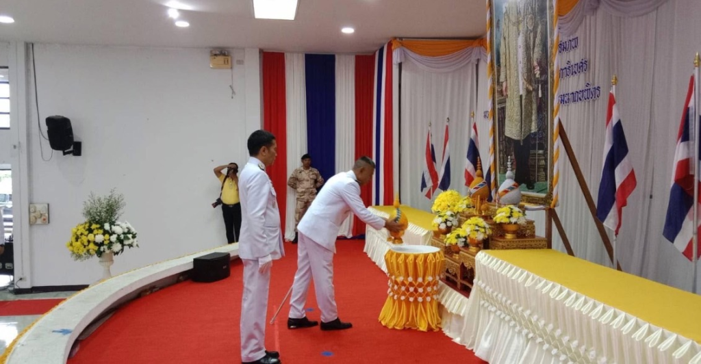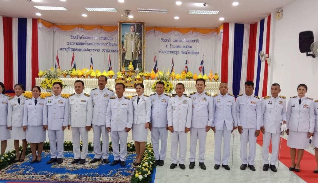 วันที่ 5 ธันวาคม 2567 เวลา 08.30 น. พ.ต.อ.เฉลิม ยิ่งคง ผกก.สอบสวน ภ.จว.พัทลุง รรท.ผกก.สภ.ทะเลน้อย/กรรมการ กต.ตร., นายสันติ แสงทอง ประธาน กต.ตร.สภ.ทะเลน้อย, นางชลฑิชา หมื่นหนู รองประธาน กต.ตร./นายกเทศมนตรีตำบลทะเลน้อย ร่วมวางพานพุ่มดอกไม้วันคล้ายวันพระบรมราชสมภพ พระบาทสมเด็จพระบรมชนกาธิเบศร มหาภูมิพลอดุลยเดชมหาราช บรมนาถบพิตร วันชาติและวันพ่อแห่งชาติ 5 ธันวาคม 2567 ณ ศาลาประชาคม อำเภอควนขนุน จังหวัดพัทลุง