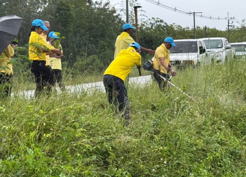 วันที่ 11 ตุลาคม 2567 เวลา 15.00 น. นายสันติ แสงทอง ประธาน กต.ตร.สภ.ทะเลน้อย นางชลฑิชา หมื่นหนู รองประธาน กต.ตร.สภ.ทะเลน้อย./นายกเทศมนตรีตำบลทะเลน้อย พ.ต.ท.ทวีศักดิ์ ขุนเพชร รอง ผกก.ป.สภ.ทะเลน้อย/กรรมการ กต.ตร.สภ.ทะเลน้อยพ.ต.ท.กฤติเดช นิ่มดวง สวป.สภ.ทะเลน้อย/กรรมการ กต.ตร.สภ.ทะเลน้อย และ ด.ต.หญิงจิรภา ชาตรี ผบ.หมู่ (ป.)สภ.ทะเลน้อย/กรรมการ กต.ตร.สภ.ทะเลน้อย ร่วมกิจกรรมจิตอาสาพัฒนาเนื่องในวันสำคัญ วันนวมินทรมหาราช วันคล้ายวันสวรรคตของพระบาทสมเด็จพระบรมชนกาธิเบศร มหาภูมิพลอดุลยเดชมหาราช บรมนาถบพิตร 13 ตุลาคม 2567 โดยการปรับภูมิทัศน์ ทำความสะอาด ตัดหญ้า และปลูกต้นไม้ เพิ่มพื้นที่สีเขียว บริเวณริมถนน สายบ่อทราย – แหลมโตนด และบริเวณข้างศาลาประจำหมู่บ้าน ม.1 ต.แหลมโตนด อ.ควนขนุน จว.พัทลุง
