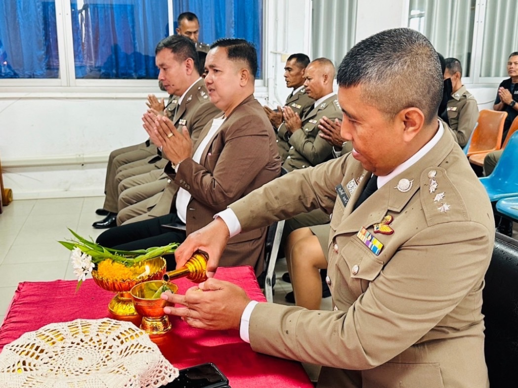 วันที่ 17 ตุลาคม 2567 เวลา 06.30 น. พ.ต.อ.ธนสิทธิ์ จงหวัง รอง ผบก. ภ.จว.พัทลุง รรท.ผกก.สภ.ทะเลน้อย พ.ต.ท.มานิตย์ เอี๋ยวสกุล รอง ผกก.สอบสวนฯ/กรรมการ, กต.ตร.สภ.ทะเลน้อย, นายสันติ แสงทอง ประธาน กต.ตร.สภ.ทะเลน้อย, นางชลฑิชา หมื่นหนู รองประธาน กต.ตร.สภ.ทะเลน้อย./นายกเทศมนตรีตำบลทะเลน้อยพร้อมข้าราชการตำรวจในสังกัด ร่วมกิจกรรมเนื่องในวันตำรวจ 17 ตุลาคม 2567 ณ สภ.ทะเลน้อย