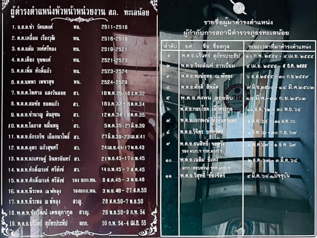 • วันที่ 28 สิงหาคม 2550  มีการปรับโครงสร้างสถานีตำรวจ โดยมีคำสั่งให้หัวหน้าสถานีตำรวจภูธรตำบลทะเลน้อย  ดำรงตำแหน่งสารวัตรใหญ่