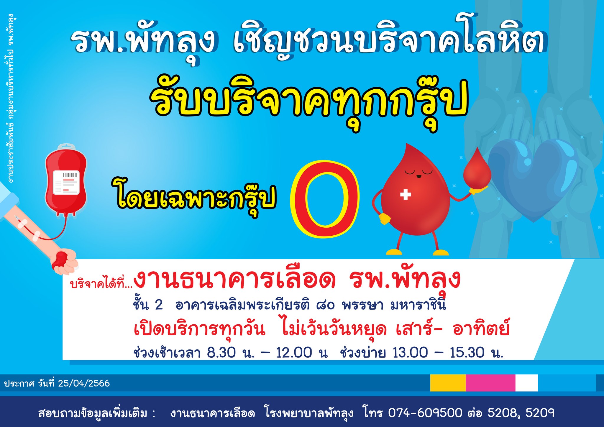 สภ.ทะเลน้อย เชิญชวนร่วมบริจาคโลหิต ณ ศูนย์บริจาคโลหิต รพ.พัทลุง วันที่ 13 ก.ค. 2566 เวลา 08.00 น. &#